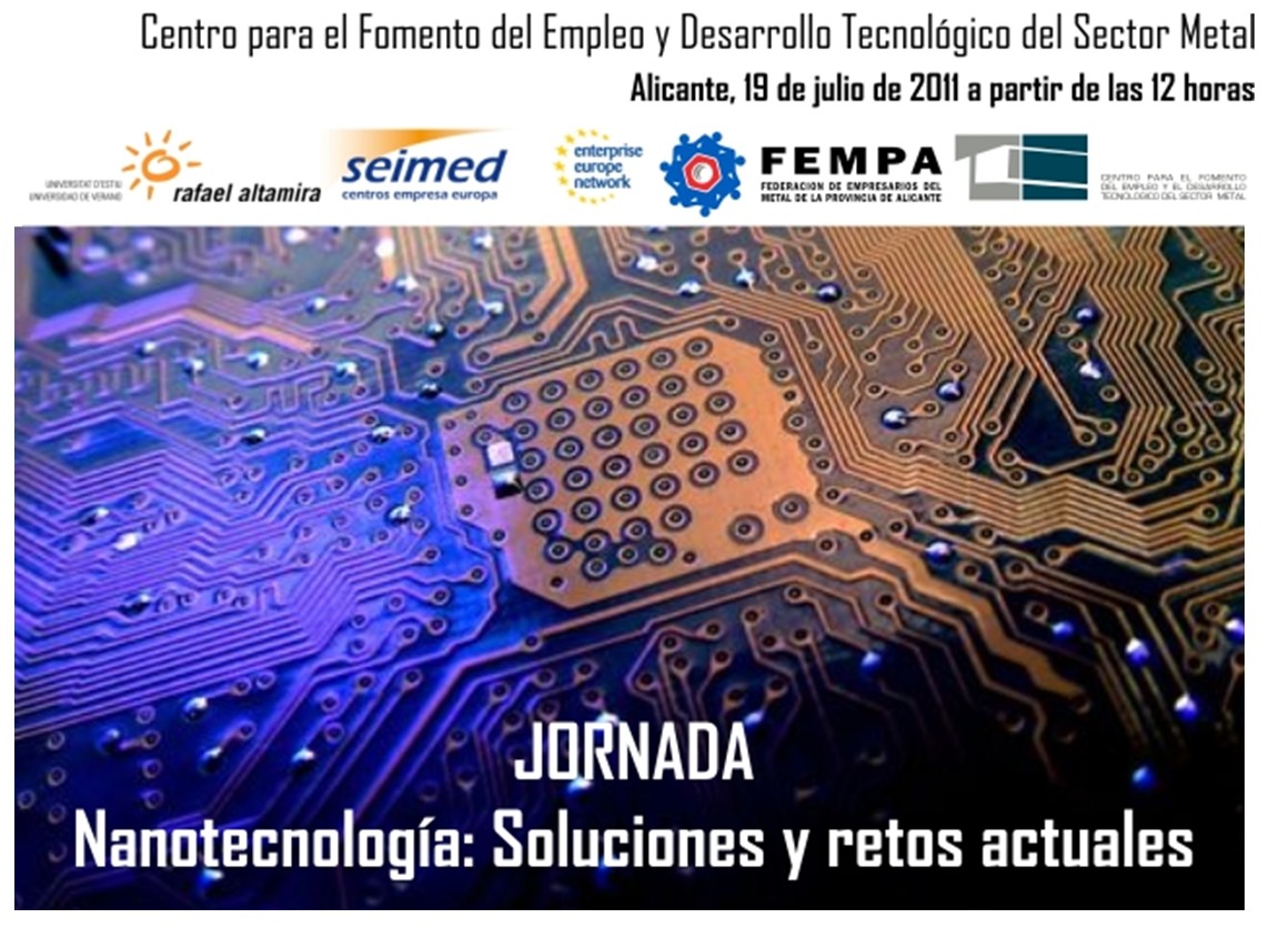 La estrecha relación entre la Federación de Empresarios del Metal de la Provincia de Alicante y la Universidad de Alicante se escenificará de nuevo el próximo 19 de julio, martes, con la jornada inaugural del curso “Nanotecnología soluciones y retos actuales" que tendrá lugar en el Centro para el Fomento del Empleo y Desarrollo Tecnológico del Sector Metal de FEMPA a partir de las 12 de la mañana. `